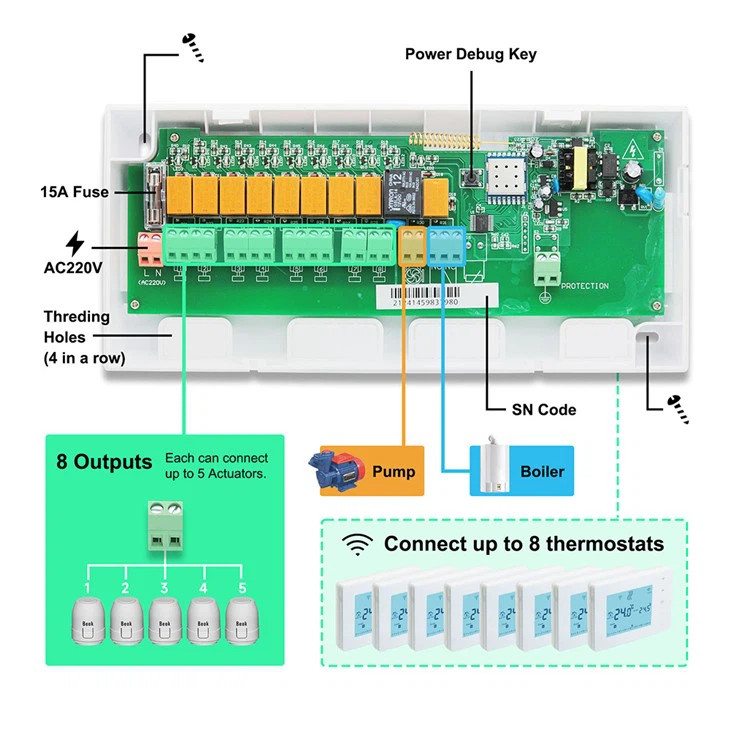 A CCT-10-X vezeték nélküli vezérlést  fűtési rendszerekhez használják. Vezérelheti a kazánt, a zónaszelepeket, a vezeték nélküli kazántermosztátokat, a keringető szivattyút, az elektromos működtetőket és a különféle keverőszelepeket. A felhasználó által beállított hőmérsékletnek megfelelően a hub vezérlő vezérelheti a kazán, a keringető szivattyú és az elektromos működtetők nyitását vagy zárását, hogy elérje a kényelem és az energiatakarékosság célját.
