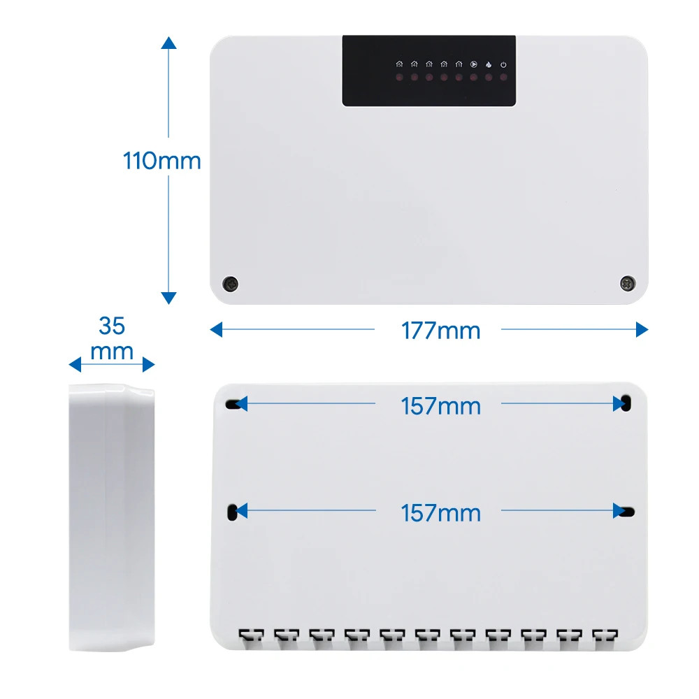 Ez az egység a fűtési termosztát jeleinek központi feldolgozására szolgál, és utasításokat továbbít az osztó-gyüjtőn elhelyezett elektromos szelepének nyitásának vagy zárásának szabályozására, valamint zónaszabályozást végez.