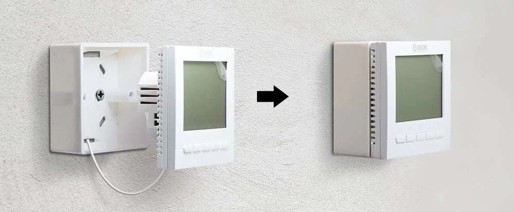 • A termosztát felületre szerelhető hátsó doboza a termosztát falra történő felszerelésére szolgál.