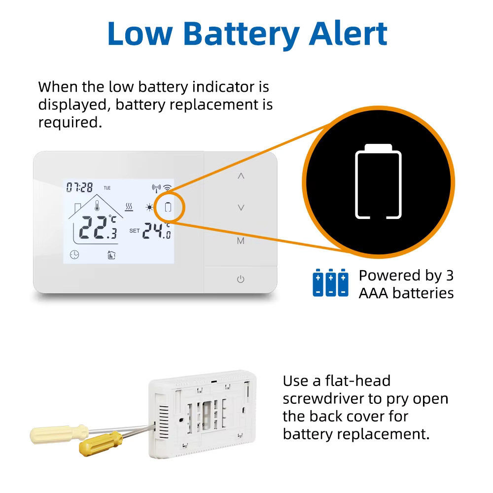 • Tápellátás:  A termosztát elemekkel 3db AAA vagy USB-ről is működtethető.