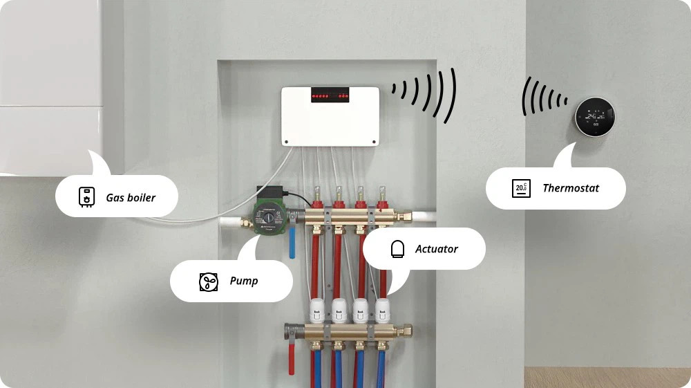 A CCT-28-X egy központi vezeték nélküli hub vezérlő a hidraulikus fűtési rendszerhez, amely csatlakoztatható gázkazánhoz, szivattyúhoz, termikus aktuátorokhoz és termosztátokhoz a beltéri hőmérséklet szabályozásához több helyiségben. A hagyományos vezetékes hubokhoz képest a vezeték nélküli hubok legnagyobb tulajdonsága, hogy vezeték nélkül is csatlakozhatnak a termosztátokhoz. Csak vezeték nélküli párosítást igényelnek, ami segít a felhasználóknak elkerülni az újrahuzalozással járó gondokat.