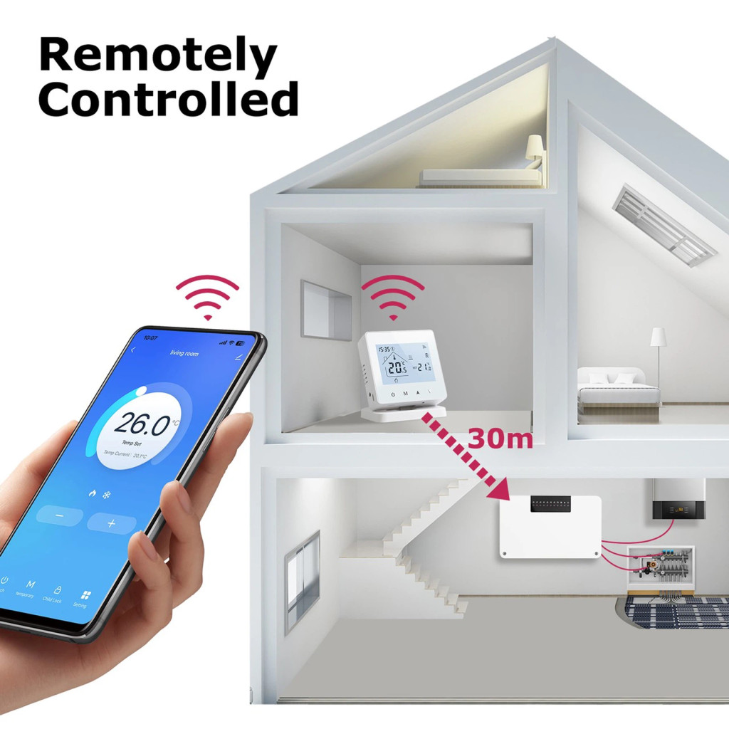 Vezeték nélküli termosztátokkal működik