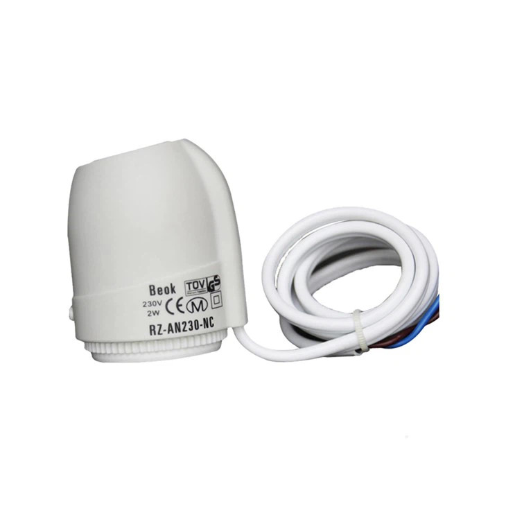 A Beok RZ-AN230-NC termikus szelepmozgató egy vízpadlófűtési rendszerekben használt kis szabályozószelep, amelyet általában az elosztó minden áramkörére szerelnek fel. Az elektromos szelepmozgató nyitása vagy zárása a szabályozó jelére történik, hogy beállítsa a meleg víz keringését a padló alatti padlófűtési csőben, ezzel elérve a beltéri hőmérséklet beállításának célját. A klasszikus megjelenés mellett ez az elektromos működtető egy francia import szelepmagot is használ, hogy meghosszabbítsa az elektromos működtető szerkezet élettartamát. Bár sok ugyanolyan megjelenésű termék van a piacon, nálunk jobb a minőség.