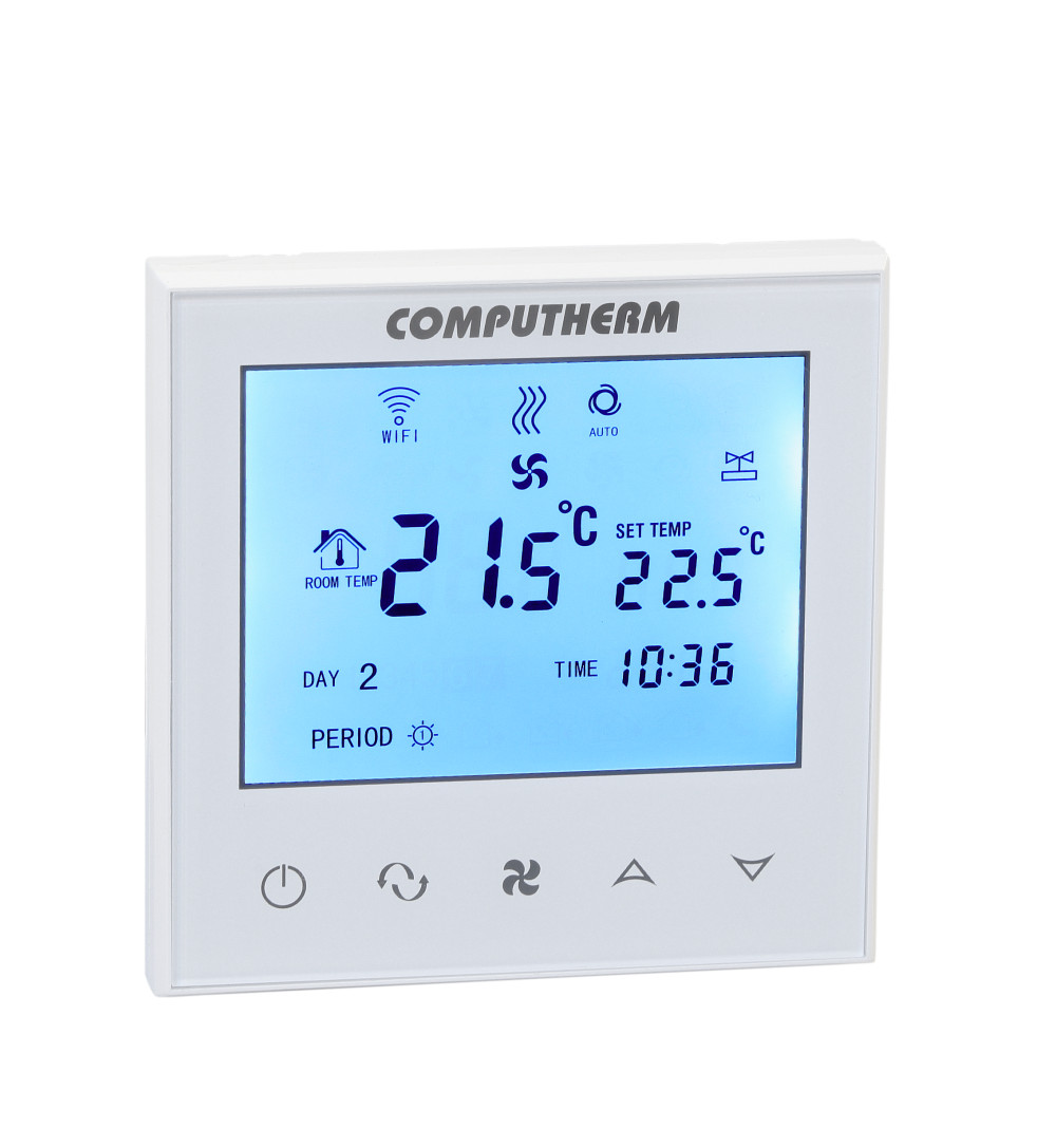 A COMPUTHERM E280FC Wi-Fi fan-coil termosztátok segítségével a termosztátokhoz csatlakoztatott készüléket (pl. fan-coil fűtő/hűtő/szellőztető készülék) az interneten keresztül vezérelheti, illetve ellenőrizheti annak működését mobiltelefonja, táblagépe segítségével. A termékek használatával lakásának, házának vagy üdülőjének a fűtése bármikor és bárhonnan vezérelhetővé válik. Alkalmazhatók 2-csöves és 4-csöves fűtési/hűtési rendszerekhez egyaránt. A termosztátok lehetőséget nyújtanak hőmérséklet illetve időpont alapján történő automatikus vezérlésre is. A készülék interneten keresztül és az érintőgombos kezelőfelületen is egyszerűen vezérelhető, annak működési állapota folyamatosan ellenőrizhető. A készülék lehetőséget nyújt hőmérséklet illetve időpont alapján történő automatikus vezérlésre is. Több, akár különböző helyszíneken üzembe helyezett termosztát ugyanazon felhasználói fiókba regisztrálható, vezérelhető.