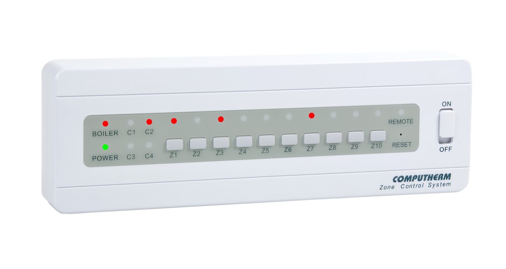 COMPUTHERM Q10Z zónavezérlő legfeljebb 10 darab, kapcsoló üzemű termosztáttal szabályozott fűtési zóna vezérlését tudja megvalósítani. Az egyes zónák külön-külön, vagy akár egyszerre is üzemeltethetők. Ez lehetőséget biztosít arra, hogy mindig csak azok a helyiségek legyenek fűtve, melyekre éppen szükség van. Az ily módon kialakított fűtési rendszer nagy mértékben növeli a komfortot és jelentősen hozzájárul az energiaköltségek csökkentéséhez is. A zónavezérlőhöz akár COMPUTHERM Wi-Fi termosztátjaink is csatlakoztathatók, melynek segítségével akár zónánként távvezérelhető fűtési rendszer kerülhet kialakításra.