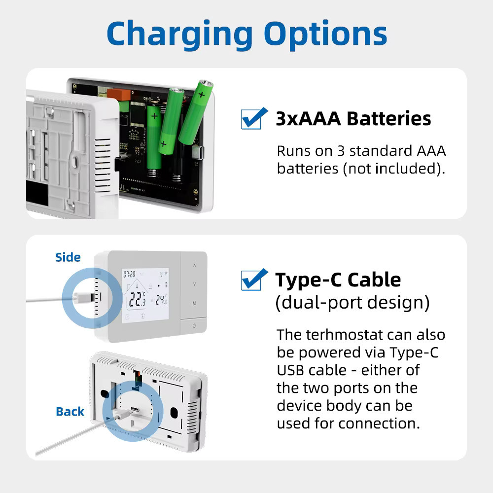 BeOk rádiófrekvenciás Wifis Okos szobatermosztát fekete BOT-506X-B-WIFI Fűtő-Hűtő