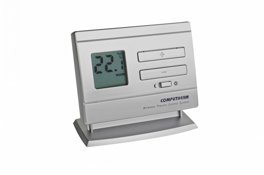 A termosztát a hatótávolságon belül szabadon hordozható. A kapcsolatot a COMPUTHERM Q5RF/Q8RF vevőegységgel és/vagy a COMPUTHERM Q1RX dugaljjal vezeték nélküli (rádiófrekvenciás) összeköttetés biztosítja, így a termosztát és a kazán között nincs szükség vezeték kiépítésére.