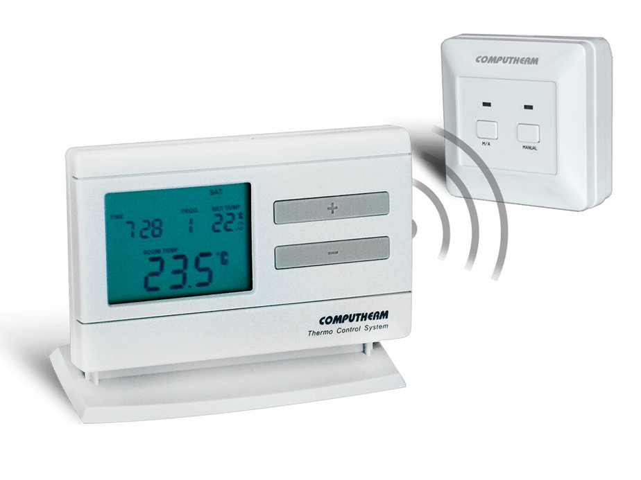 A COMPUTHERM Q7RF típ. kapcsoló üzemű, vezeték nélküli, programozható szobatermosztát a Magyarországon forgalomban lévő kazánok és